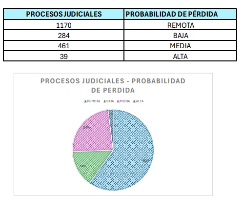 Con corte a 17 de febrero de 2026, la probabilidad de pérdida de los procesos activos o pendientes de terminación es:
